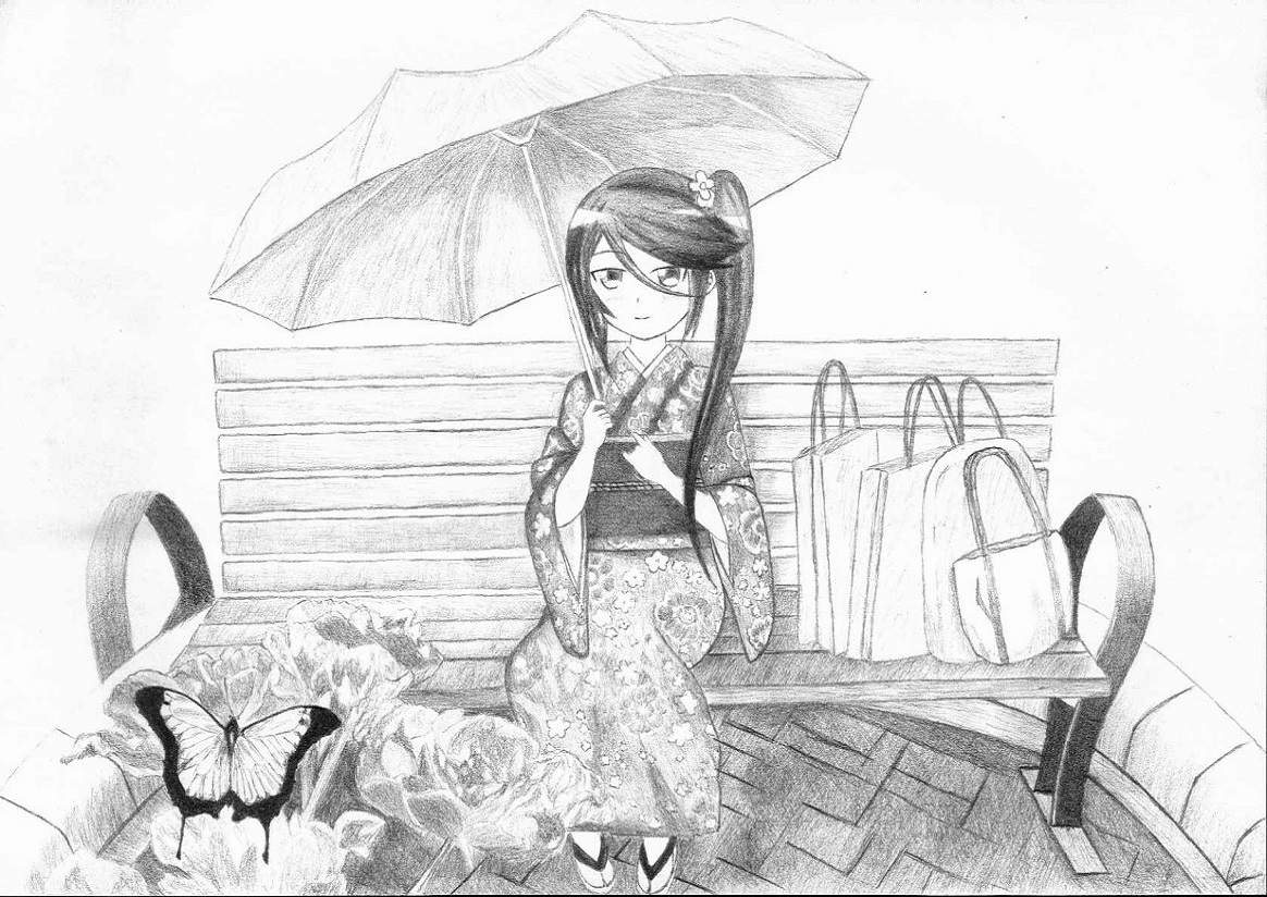 很久没画背景,试了一下,果然还是一如既往的渣啊!涂黑相当耗费时间,与之相对的是效果却还不咋地。我都快放弃涂黑了,看看别人的排线,线条粗细一致,均匀,没有一点乱的感觉,而我刚好相反。以后要练习,估计得找原图相对简单一点的来临摹。这幅图的背景还差背后的树和叶子,实在是太复杂了,我的耐心已经接近0值,所以只好停手了,估计画了也是一团黑糊糊的感觉。